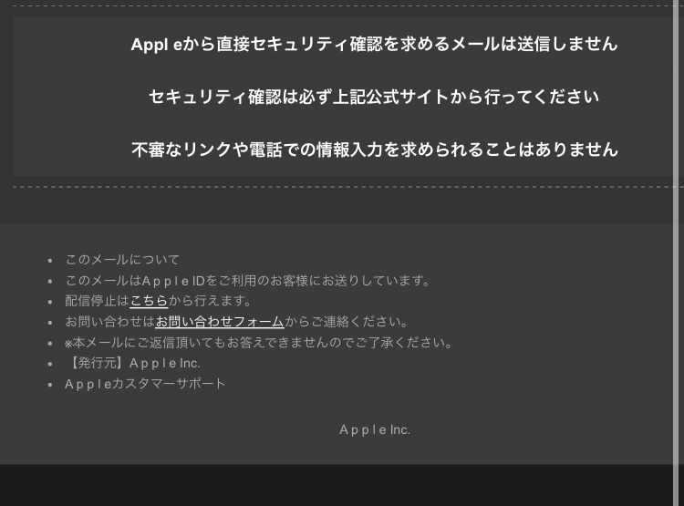 Appl e ID情報を確認する Appl eから直接セキュリティ確認を求めるメールは送信しません